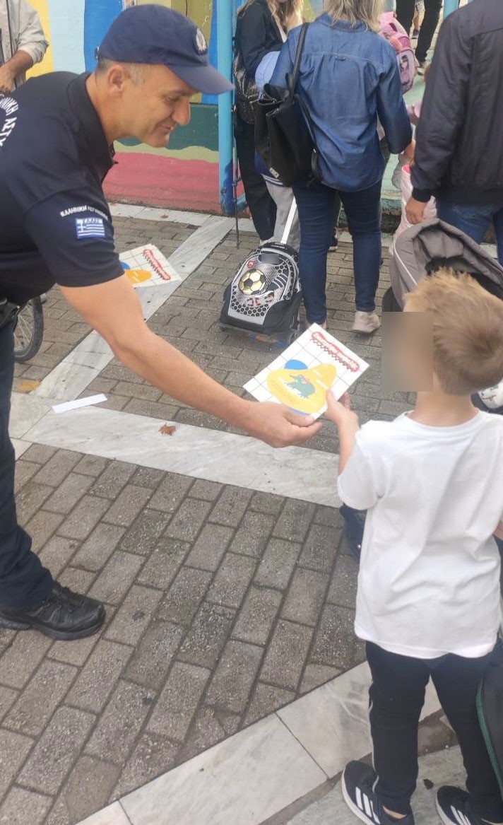 Αστυνομικοί από Υπηρεσίες της Γενικής Περιφερειακής Αστυνομικής Διεύθυνσης Θεσσαλίας, την Πέμπτη, 28-09-2023, την Παρασκευή, 29-09-2023 και σήμερα, Δευτέρα 2-10-2023, το πρωί, βρέθηκαν σε σχολεία -κατά περίπτωση- σε περιοχές της Λάρισας, της Μαγνησίας, των Τρικάλων και της Καρδίτσας, μοιράζοντας ενημερωτικά φυλλάδια, σχολικά προγράμματα και σελιδοδείκτες κυκλοφοριακού περιεχομένου σε μαθητές και γονείς.